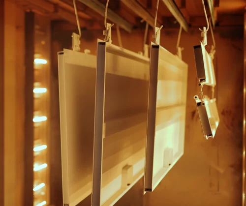With the initially mentioned curing using diode lasers, this alternative solution is now also available. The relatively new process uses the Ultra Wide Spot technology, which was originally developed by Laserline for the electrode drying of lithium-ion batteries in the roll-to-roll process. This beam technology is based on the specially designed OTX Ultra Wide Spot Optics and makes it possible to realize beam widths of 1.5 meters and more. This makes it interesting for other heat treatment processes of large surfaces beyond electrode drying. When curing powder coatings, this beam technology can be applied either for both the heating and holding phases – covering the entire curing process – or just for the heating phase. In the latter case, laser curing is used before the oven process, handling the melting and gelling, while the holding phase continues unchanged in the oven.