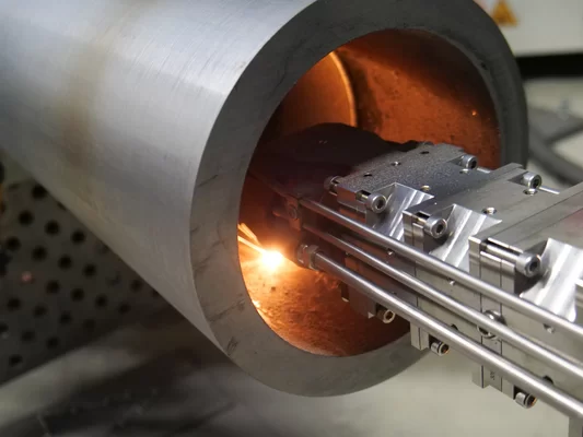 ID laser cladding offers a highly efficient and reliable method for protecting internal surfaces against wear, corrosion, and high thermal or mechanical loads. Using high-power diode lasers in combination with Laserline’s OTI processing optics, this technology enables precise and reproducible coatings even deep inside cylindrical components.